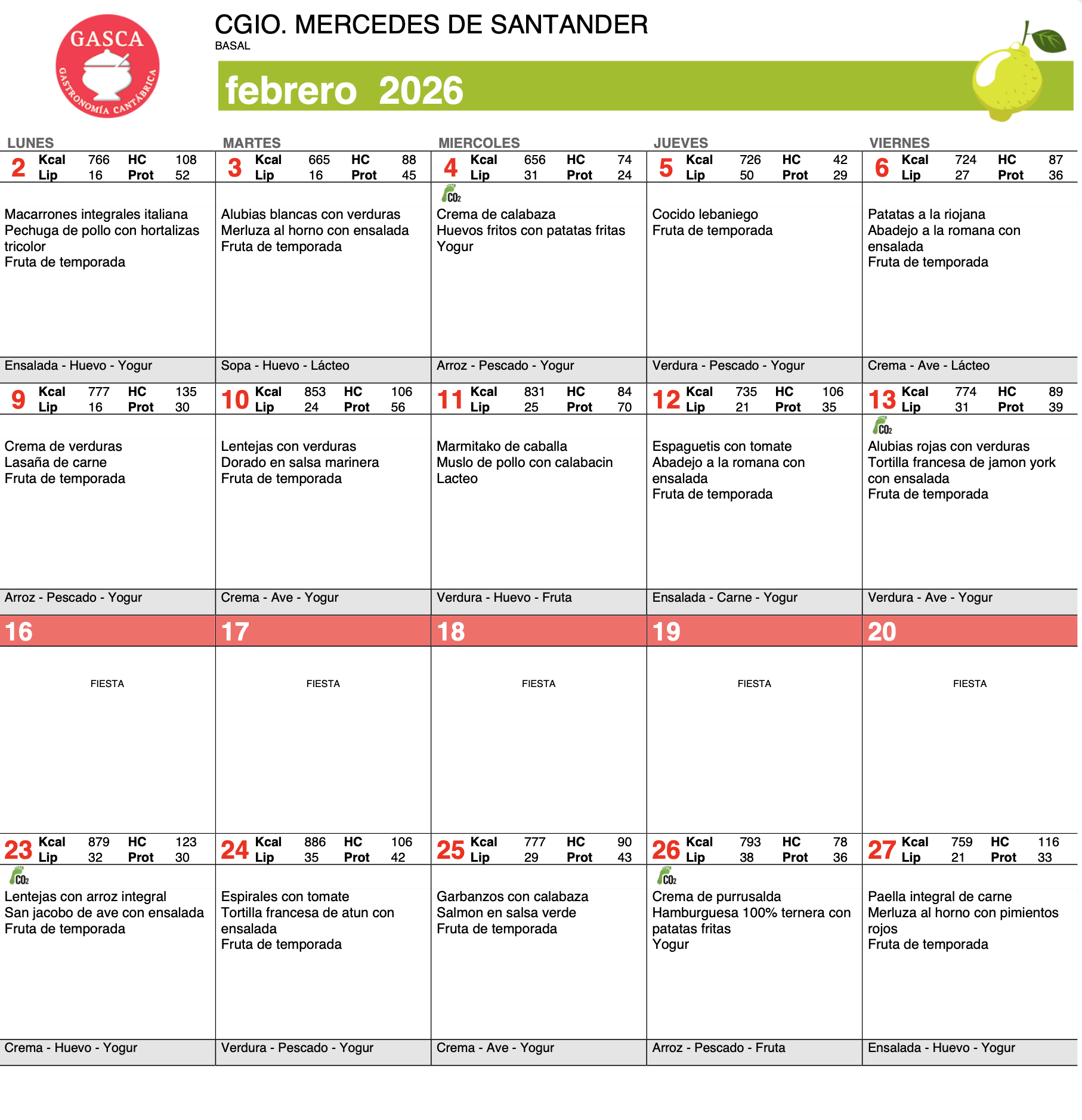 El Colegio Mercedes de Santander cuenta con una cocina moderna y nueva donde, diariamente se preparan los menús de los alumnos. Cocinados con ingredientes de calidad, se preparan platos saludables que respetan la cantidad de calorías que se deben consumir. Además, nuestro cocinero prepara menús especiales para aquellos niños que sufran intolerancias alimentarias.